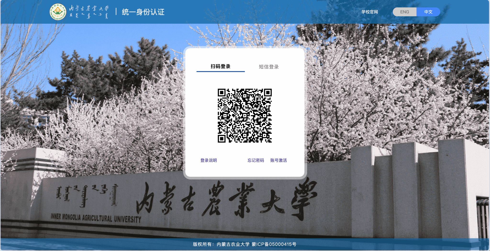 请使用微信或企业微信APP扫描二维码登录。(扫码登录前,请先关注“内蒙古农业大学微校园”)
